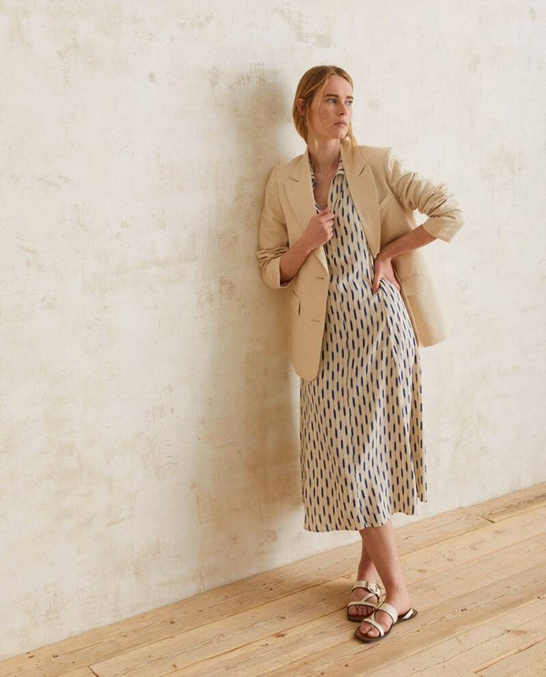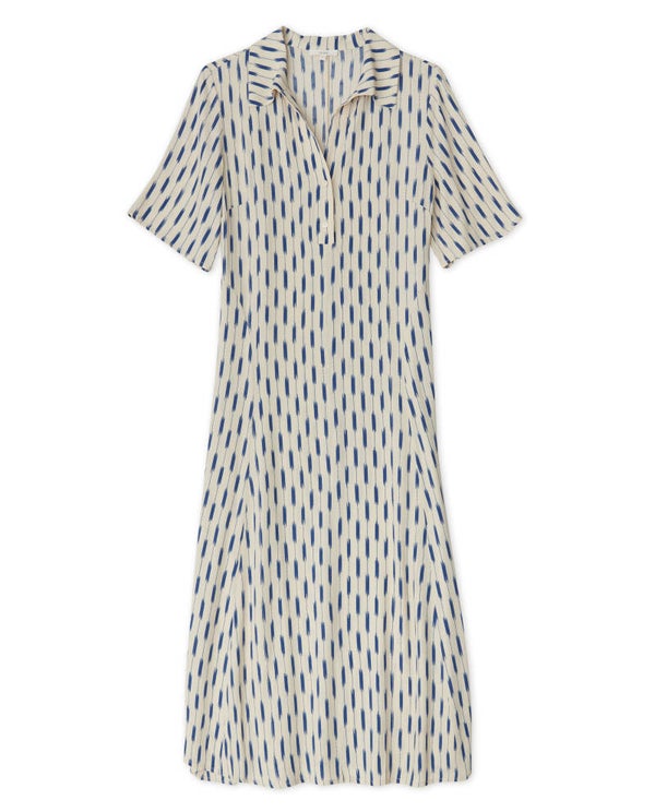 100% viscose shirt dress. Collar. Short sleeves. Straighter fit. Midi cut.