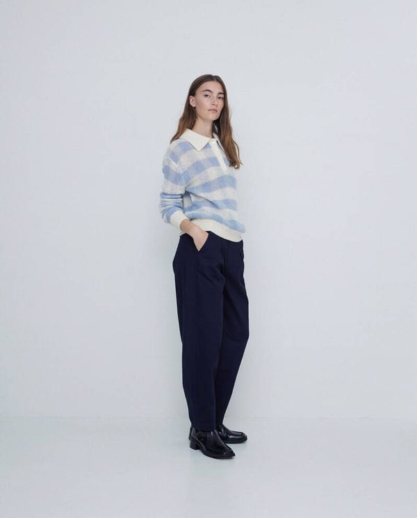 Alpaca sweater. Polo neck with buttons. Long sleeves. Gingham jacquard.
