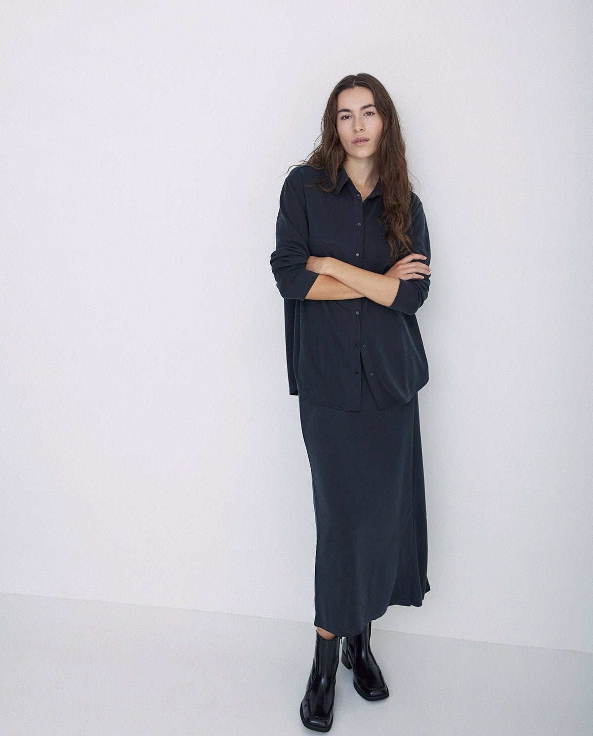 Knitted midi skirt. Modal blend fabric, soft touch. High shot. Elastic waist.