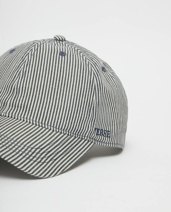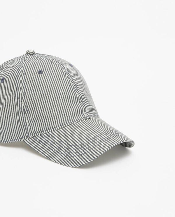 Cap with visor. Striped print. Adjustable strap. Sweatband for breathability.