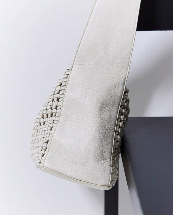 Handmade braided leather bag. Zip close. 1 wide handle. With interior lining. 1 inner zip pocket.