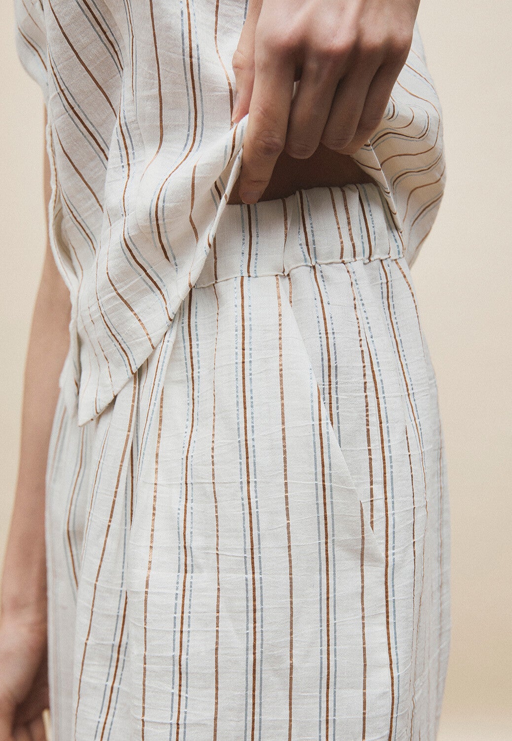 Cotton trousers. Straight-leg style with a flat waistband at the front and elasticated waistband at the back. Invisible zipper on the side.