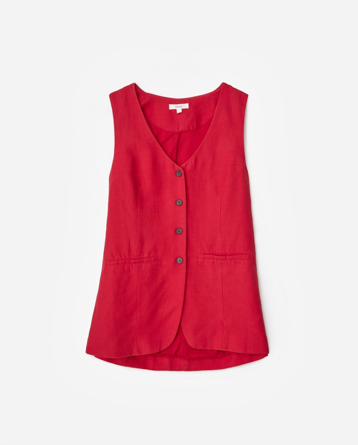 Long tencel vest. Tencel and linen blend. V-neck. Button fastening.
