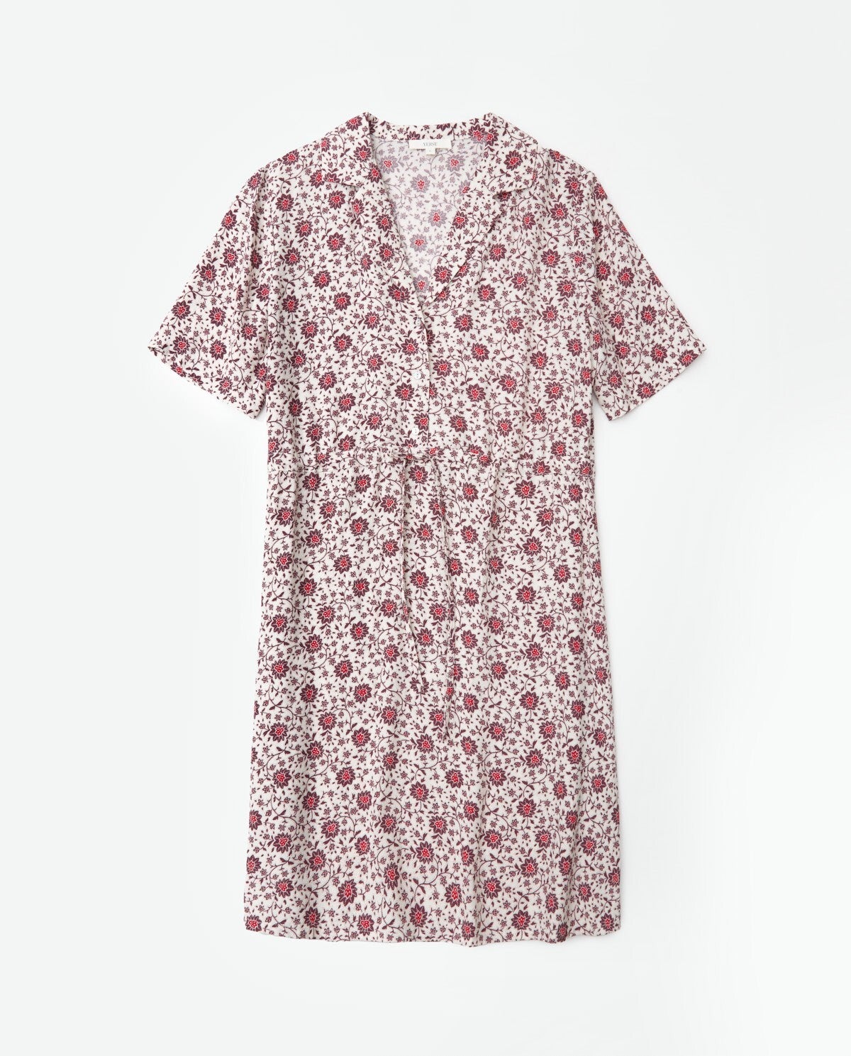 Short dress EcoVero™ viscose crepe. Floral print design. Lapels. Short sleeves. Button fastening at the chest. Drawstring waist.
